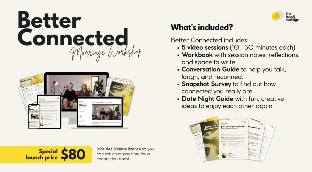 We're on a mission to get couples better connected because life is easier when you're closer. Already, 480 couples have done this workshop in person. Now we're opening it up for the world!